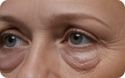Bolsas sob os olhos que te fazem parecer mais velha e afetam sua autoestima e confiança.